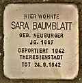 | Sara Baumblatt, geb. Neuburger | 1867–1942 | Tod im Ghetto Theresienstadt | Badgasse 4 |
