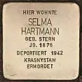 | Selma Hartmann, geb. Stern | 1876–1942? | Hausfrau | Deportation in das Ghetto Krasnystaw, genauer Todesort und -zeitpunkt unbekannt | Maxstraße 24 |