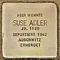 | Susanne Adler | 1920 – ?? | Tod im KZ Auschwitz, genauer Todeszeitpunkt unbekannt | Hartmannstraße 5 |