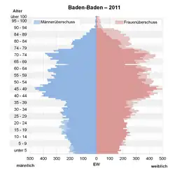- ↑ Datenbank Zensus 2011, Baden-Baden, Alter + Geschlecht ( vom 22. September 2021 im Internet Archive)