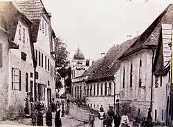 Bis zum Anfang des 20. Jahrhunderts hieß die Straße Judengasse (Židovská), dann wurde sie in Bahnhofstraße umbenannt. Die meisten Häuser dieser Straße gehörten bis 1938 Juden, nämlich die Hausnummern (jetzt alle arabisch): 8, 9, 16, 23, 26, 31, 33, 34, 37, 42, 43, 66, 68, 116, 205, 206, 264, 265, 266, 267, 268, 286. Haus Nummer 8 war das Hotel Krone, Nummer 34 war von 1814 bis 1938 die Synagoge, Nummer 205 und 206 waren Gebäude des Feldspatwerkes der Familie Mandler. Seit 1945 heißt die ehemalige Judengasse Masarykstraße.[20]