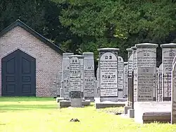 Jüdischer Friedhof in Assen, im Hintergrund das Taharahaus