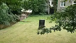 An den Friedhof, der nicht mehr frei zugänglich ist, erinnert ein Gedenkstein auf einer Rasenfläche. An der den ehemaligen Friedhof umgebenden Mauer befindet sich seit 1992 ein Mahnmal für die Opfer des Holocaust.[1]