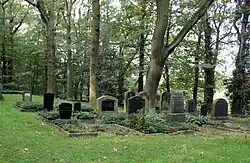 Insgesamt 27 Grabstellen sind heute noch erkennbar. Davon lassen sich 19 Gräber individuell zuordnen.[2] Mehrere Grabstellen gehören zur um 1850 in die USA ausgewanderten Familie Eisendrath, die sich bis in die Gegenwart hinein immer wieder für Renovierungen des Friedhofs engagiert hat.[3]