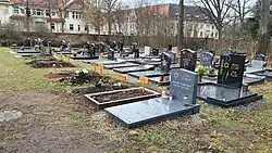 | * befindet sich mitten im städtischen Hauptfriedhof * wurde im 20. Jahrhundert mehrfach geschändet | |