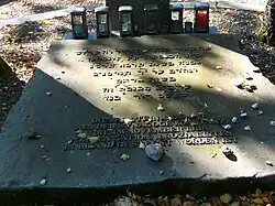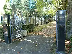 Im neuen Teil des Friedhofs befindet sich die Grabplatte für die sieben Thorarollen, die bei einem Brandanschlag auf die Synagoge in der Sigismundstraße 19 in der Innenstadt im Jahr 1936 beschädigt wurden. Dahinter wird eine Steinplatte der Synagoge aufbewahrt, die beim In-Brand-Stecken und dem gewaltsamen Sprengen der Synagoge am 10. November 1938 erhalten blieb.[2]