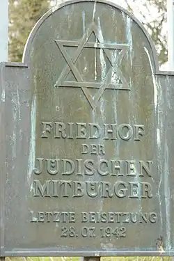 Der alte jüdische Friedhof am Waldrand beim Schützenplatz wurde 1944 durch Bomben zerstört und die verbliebenen 31 Grabsteine, der älteste datiert in das Jahr 1640, des 1945 eingeebneten Friedhofs wurden auf den neuen Friedhof verbracht.