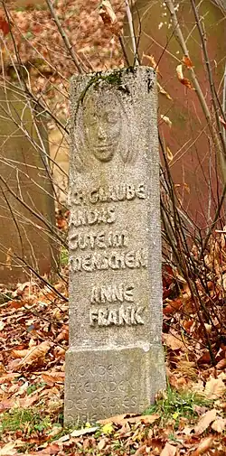 Laut Inschrift auf einem Gedenkstein aus der 2. Hälfte des 20. Jahrhunderts wurde der Friedhof das erste Mal 1673 belegt[2], jedoch weist ein Grabstein als Sterbedatum des Verstorbenen bereits den 13. März 1625 aus.[3] Der Friedhof wurde bis 1890 als einziger jüdischer Friedhof im Rheingau von vielen jüdischen Gemeinden genutzt, bis diese teilweise eigene Friedhöfe bekamen. Eine letzte Belegung erfolgte 1974.[4] Abzüglich zweier Gedenksteine bestehen auf dem Friedhof 145 Grabsteine.[5] Der Gedenkstein für Anne Frank wurde um 1970 von Anton Haust geschaffen.