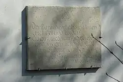 Auf einer weiteren Steintafel ist zu lesen: Der du mich hast schauen lassen viel Not und Leiden du wirst wiederum mich beleben und aus den Tiefen der Erde mich wiederum erheben Ps. 71/20. Ihren jüdischen deutschen Mitbürgern zur Sühne und Ehre Stadt Oettingen i. Bay.