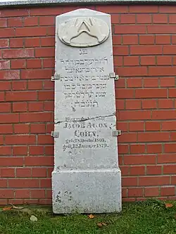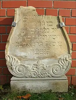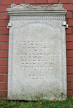 Grabstein mit hebräischer Inschrift, nicht mehr an alter Stelle |