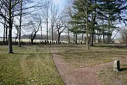 Der Friedhof an der Straße von Hovestadt nach Eickelborn (= Landesstraße L 636 = Postweg; Heide Schoneberg, Nordseite) wurde von etwa 1830 bis 1920 belegt. Es sind 49 Grabsteine erhalten, die allerdings nicht mehr an den ursprünglichen Grabstätten stehen.