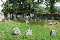 Auf dem gut erhaltenen Friedhof befinden sich zahlreiche Grabsteine im Stil der Renaissance, des Barocks und des Klassizismus, die ältesten bis zu 300 Jahre alt.