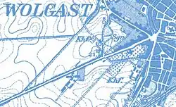Über die Geschichte des jüdischen Friedhofes in Wolgast ist nur wenig bekannt. Laut Berghaus hatte Wolgast bei 6637 Einwohnern nur 3 jüdische Bürger. Bei dem Friedhof scheint es sich um einen Mischfriedhof zu handeln. Die Bezeichnung Kirchhof im Messtischblatt von 1880 und die teilweise + - Signatur für Christlich und teilweise L - Signatur für Jüdisch lassen dies erahnen. Vermutung: Selbstmörder z. B. durften nicht auf kirchlichen Friedhöfen beigesetzt werden - vielleicht aber hier? Er ist ja sehr klein. Bestätigt wurde diese These 2006 durch Auffinden von alten christlichen als auch jüdischen Grabsteinen. Bei separaten Jüdischen Friedhöfen benutzte man sonst in der MTB 1880 die Beschriftung "Begräbnisplatz" und diese Friedhöfe lagen auch meistens weiter entfernt, ja sogar sehr abgelegen und versteckt außerhalb der jeweiligen Stadt.[1]
