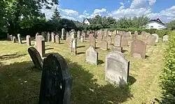 Der etwa 1000 m² große jüdische Friedhof liegt in einem Wohngebiet westlich der Felsburg in der Annastraße. Es sind 166 Grabsteine vorhanden.[1]