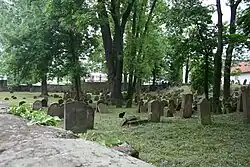 Der Friedhof wurde vermutlich im späten Mittelalter angelegt. Die ältesten datierbaren Grabsteine stammen aus dem 15. Jahrhundert,[2] nach anderen Angaben aus dem Jahr 1616.[3] Viele der älteren Steine sind eingesunken oder deren Inschrift verwittert. Erhaltene und gut lesbare Inschriften liegen ab der Mitte des 18. Jahrhunderts vor.