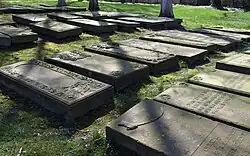 Ab 1895 verkleinerte man die Friedhofsfläche auf ein Viertel. Im Zuge dieser Maßnahme hat man die Grabsteine der Größe nach aufgestellt.