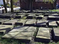 Die meisten Gräber (etwa 90) sind sephardisch, sie sind durch liegende Grabplatten aus Sandstein abgedeckt. Hinzu kommen 11 aufrechte Stelen. Die sephardischen Steine tragen meist hebräische, aber auch lateinische Schriftzeichen. Folgende Symbole sind dargestellt: Sanduhren, Totenschädel über gekreuzten Knochen, Segnende Priesterhände, Stiefel, Levitenkanne und Schale, gespannter Bogen, Hand mit Schwert, Hand mit Waage.