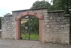 Ursprünglich lag er weit außerhalb der Ortschaft, inzwischen ist er von Wohnbebauung umgeben. Der Süden ist vom Balbach, die anderen Seiten von Mauern begrenzt. Der alte Eingang in der nordwestlichen Ecke liegt heute teilweise unterhalb des Straßenniveaus und ist zugemauert. Vom aktuellen Eingang durch ein doppeltüriges schmiedeeisernes Tor unter einem Sandsteinbogen in der Mitte der Nordmauer führen Stufen auf das Niveau des Friedhofs hinab.