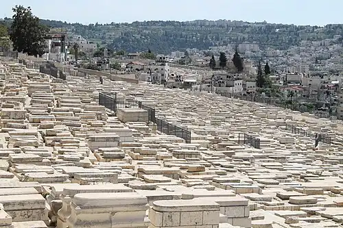Der Jüdische Friedhof am Ölberg (hebräisch בֵּית הַקְּבָרוֹת הַיְּהוּדִי בְּהַר הַזֵּיתִים Bejt ha-Qvarōt ha-Jəhūdī bə-Har ha-Sejtīm) in Jerusalem mit der Nekropolis von Silwan ist der älteste und aufgrund jüdischer Rituale und Traditionen bedeutendste jüdische Friedhof der Welt.[1][2][3] Die ersten Grablegungen am 809 Meter hohen Ölberg, der sich rund 50 Meter über der Jerusalemer Altstadt erhebt, fanden vor etwa 3000 Jahren am Anfang der Zeit des Ersten Tempels statt.[4] Einige der Grabstätten sind heute Baudenkmäler.