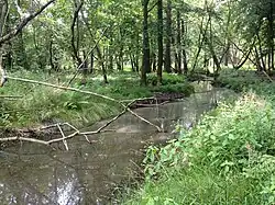 Der hohe Totholzanteil im Jütrichauer Busch bietet zahlreichen holzzerstörenden Pilzarten eine Lebensgrundlage. So siedeln hier z. B. verschiedene Helmlinge.