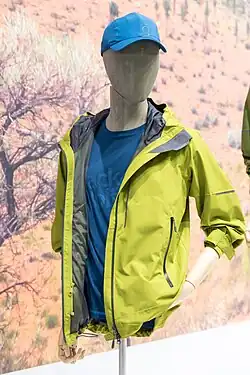 - Anorak – Eine hüftlange Jacke mit Kapuze, die man als Schutz gegen Wind und Nässe trägt, in gefütterter Ausführung auch gegen Kälte. Ein Parka ist ein langer, oft gefütterter Anorak.