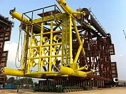 Jackets sind in der Grundfläche viereckige Fachwerkkonstruktionen aus Stahlrohren, deren oberes Ende nach der Installation aus dem Meer herausragt. Das Jacket selbst steht auf dem Meeresboden. Durch die Hülsen an den vier Ecken wird zur Verankerung jeweils mindestens ein Pfahl in den Baugrund gerammt.[1] Auf einem Jacket kann z. B. eine herkömmliche Windenergieanlage, eine Umspannplattform oder eine Bohrplattform errichtet werden.