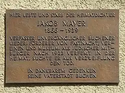 Jacob Mayer (* 5. Januar 1866 in Buchen (Odenwald); † 11. Juni 1939 ebenda), eigentlich Jakob Mayer,[1] war jüdischer Bürger von Buchen und Mundartdichter.