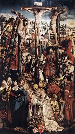 Gegen Ende seines Lebens stiftete Jacob Murer das Tafelbild eines Kalvarienbergs (Öl auf Holz, 191,5 × 106 cm).