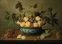 | Weidenkorb mit Trauben, Pflaumen und Pfirsichen | nach ca. 1630 (altern. 1630–1647) | 41,9 × 55,3 cm | Öl auf Paneel | Privatbesitz | – | RKD |