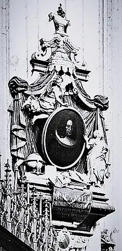 Jacob von Melle hatte bereits 1707 für sich und seine Familie eine Grabkapelle in der Burgkirche (Maria-Magdalenen-Kirche (Lübeck)) erworben,[2] in der er auch beigesetzt wurde. In der Marienkirche erinnerte ein 1942 zerstörtes Epitaph im nördlichen Chorumgang, an der Ostseite des dritten nördlichen Chorpfeilers, an ihn. Es wird beschrieben als ein „hölzernes Denkmal von mäßiger Größe“. Vor einer mit einem purpurfarbigen Wappenmantel behangenen stelenartigen Rückwand war das von Jürgen Matthias von der Hude gemalte Brustbild angebracht, über welchem ein Engel mit dem Sinnbild der Ewigkeit schwebte, während daneben eine trauernde weibliche Figur mit gesenkter Fackel stand. Auf der Basis waren Embleme der Wissenschaft aufgebaut, darunter ein Globus, die die gelehrte Tätigkeit von Melles symbolisierten. Eine herabhängende geöffnete Schriftrolle war mit Namen und Todesdatum versehen. Den unteren Abschluss bildete sein Wappen.[3]