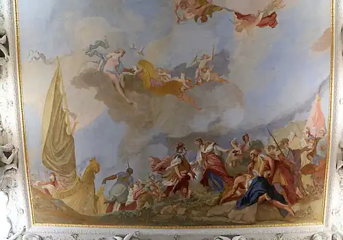 - Deckenfresko Allegorie des Tages, 1719, Badenburg im Park von Schloss Nymphenburg