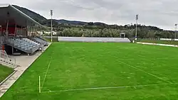 Die Stadiontribüne bietet mehr als 600 überdachte Sitzplätze und 1800 Stehplätze. Die Anlage umfasst neben dem Stadion mit dem Hauptspielfeld noch drei Trainingsplätze, davon ein Kunstrasenplatz, und einen Tormanntrainingsplatz.