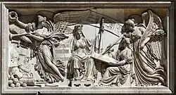 Le Sueur erwarb hohes Ansehen durch seine Basreliefs, in denen er klar individualisierte Figuren darstellte, die sich deutlich von einem ruhigen neutralen Hintergrund abheben. Schon bei seinem Grabmal für Rousseau (1780) richtete er in einer beinahe flächigen Darstellungsweise die Köpfe der Figuren nach dem Prinzip der Isokephalie aus, d. h. gleiche Kopfhöhe der Gestalten, die außerdem oftmals streng aneinander gereiht oder auch achsensymmetrisch angeordnet sind.