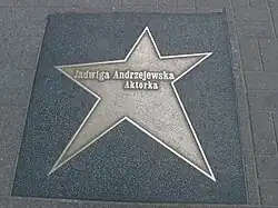 Jadwiga Andrzejewska starb 1977 im Alter von 62 Jahren und wurde auf dem Łódźer Doły-Friedhof beigesetzt. Am 16. Oktober 1998 wurde Andrzejewska zu Ehren ein Stern in der Piotrkowska-Straße in der Aleja Gwiazd (Allee der Sterne) in Łódź enthüllt.[2]
