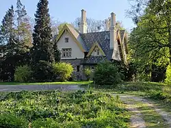 Das freistehende eingeschossige Gebäude wurde in einem romantisierenden Stil errichtet und fügt sich gut in die Schlossparkanlage ein. Der Name des Architekten ist nicht überliefert; wegen der starken Bauähnlichkeit mit den Portierhäusern des Parks ist anzunehmen, dass deren Pläne denselben Autor haben. Auch das Forsthaus auf dem Annahof weist ähnliche Gestaltungselemente auf. Erhalten sind auch die Zwinger für die Jagdhunde.