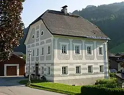 Das heute als Pfarrhof dienende Gebäude war einst ein Jagdschloss der Salzburger Erzbischöfe im Pongau. Das Gebäude besitzt ein abgewalmtes Satteldach. Die reiche Fassadengliederung stammt von einem Umbau um 1748. Dieser Umbau zu einem Vikariatshaus wurde nach Plänen des Hofbauverwalters Johann Kleber durchgeführt. In dem Gebäude ist heute u. a. eine öffentliche Bücherei untergebracht[1], zudem finden hier Ausstellungen (Advents- und Krippenausstellung) sowie Veranstaltungen des Katholischen Bildungswerks Salzburg statt.