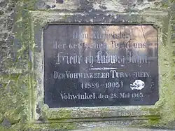 | Dem Altmeister der deutschen Turnkunst Friedrich Ludwig Jahn Der Vohwinkeler Turnverein (1880–1905) Vohwinkel, den 28. Mai 1905. |