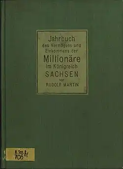 - ↑ Rudolf Martin: Jahrbuch des Vermögens und Einkommens der Millionäre im Königreich Sachsen. Verlag Rudolf Martin, Berlin 1912, S. 1.