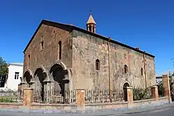 Die Kirche ist eine dreischiffige Basilika ohne Kuppel mit Satteldach, auf dem sich seitlich ein kleiner Glockenturm mit spitzer Haube befindet. Der durch Steinmetzarbeiten verzierte Haupteingang ist im mittleren der drei Bögen an der Westseite der Kirche, wo auch drei Chatschkare aus den Jahren 1504, 1571 und 1621 befestigt sind. Weitere Eingänge zur Kirche befinden sich an der südlichen und der nördlichen Wand. Im Inneren der Kirche sind an den Wänden und den in zwei Reihen stehenden Säulen mehrere Wandmalereien mit Heiligenbildern. Der Hauptaltar und die beiden Sakristeien stehen an der östlichen Innenwand.