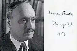 James Franck (* 26. August 1882 in Hamburg; † 21. Mai 1964 in Göttingen) war ein deutscher Experimentalphysiker, der später als jüdischer Flüchtling vor den Nationalsozialisten in die USA emigrierte und die amerikanische Staatsbürgerschaft annahm. Er erhielt 1925 zusammen mit Gustav Hertz den Nobelpreis. Franck ist vor allem wegen des Franck-Hertz-Versuchs zur Bestätigung der Quantentheorie und des Franck-Reports bekannt. In letzterem versuchte er den Präsidenten der USA, Harry S. Truman, vom Einsatz der Atombombe im Krieg gegen Japan abzubringen.
