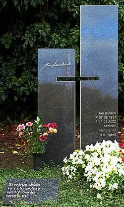 Das Grab des Komponisten mit einer interessanten Umsetzung des Kreuz-Symbols als Grabstein befindet sich auf dem Bautzener Nikolaifriedhof.