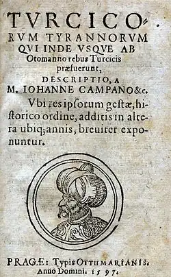 - Tvrcicorum Tyrannorvm Qvi Inde Vsqve Ab Otomanno rebus Turcicis praefuerunt, Descriptio. Typis Otthmarianis, Prag 1597 (in Hexametern), (online hier).