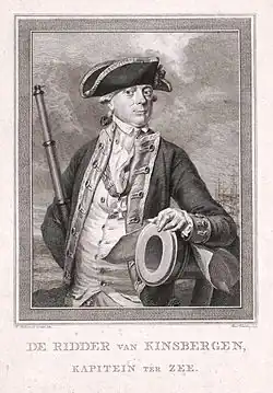 1775 nach Holland zurückgekehrt, erhielt er den Auftrag, mit dem Sultan von Marokko einen Frieden auszuhandeln, und kämpfte mit Bravour am 5. August 1781 als Erster Offizier auf dem Flaggschiff des Admirals Johan Arnold Zoutman in der Schlacht auf der Doggerbank (1781) gegen die Engländer. Bei den Einfällen der Franzosen in Holland unter General Dumouriez 1793 und 1794 waren es Kinsbergens Pläne zur Verteidigung des Moerdijk und des Zuidersees, die den Feind einige Zeit aufhielten.