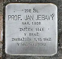 Jan Jebavý (10. Mai 1908 in Brünn – 1. Oktober 1942 in Mauthausen) war ein tschechischer Augenarzt und wurde postum am 20. Juni 1947 zum außerordentlichen Professor der Masaryk-Universität erklärt. Während der Besatzungszeit schloss er sich der Widerstandsgruppe Obrana národa (Verteidigung der Nation) an, im Oktober 1941 wurde er deswegen verhaftet und im Folgejahr mit dem Hinweis „Rückkehr unerwünscht“ ins KZ Mauthausen deportiert.