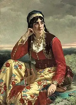 Er malte hauptsächlich Porträts und Genrebilder mit Darstellungen eleganter Damen im Garten oder in luxuriösen Interieurs. Einige Werke zeigten ein orientales Milieu.
