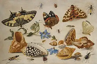 - ↑ a b Jan van Kessel, Study of insects, butterflies and a snail with a sprig of forget-me-nots; study of butterflies and other insects with a sprig of apple blossom, Sotheby’s