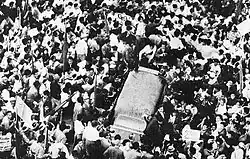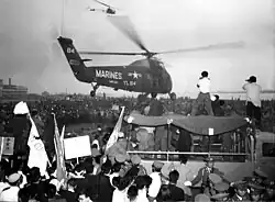 Als der Pakt dem Japanischen Parlament am 5. Februar zur Ratifizierung vorgelegt wurde, kam es zu einer erbitterten Debatte über die Beziehungen zwischen Japan und den USA, wobei die linke Opposition unter äußersten Anstrengungen gewalttätige Mittel anwandte, um die Ratifizierung zu verhindern. Der Vertrag wurde am 20. Mai schließlich vom japanischen Unterhaus gebilligt. Die Abgeordneten der Japanischen Sozialistischen Partei boykottierten die Unterhaussitzungen und versuchten, die Abgeordneten der LDP am Betreten des Hauses zu hindern. Sie wurden von der Polizei gewaltsam entfernt. Massive Demonstrationen und Aufruhr durch Studenten und Gewerkschaften folgten, bei den Zusammenstößen mit der Polizei starb die Studentin Michiko Kanba und über 500 Personen wurden verletzt. Die Demonstrationen verhinderten einen geplanten Besuch des Präsidenten Dwight D. Eisenhower in Japan und führten zum Rücktritt von Premierminister Kishi Nobusuke, jedoch nicht bevor der Vertrag am 19. Juni die Ratifizierung automatisch erhielt, da das Japanische Oberhaus nicht innerhalb der geforderten 30 Tage nach Zustimmung des Unterhauses über den Vertrag abgestimmt hatte.