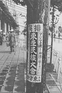 1939 bis 1941, als sich japanische Generäle zum Offensivschlag gegen die Kolonialmächte in Asien (England, Niederlande und Vereinigte Staaten) entschieden, wurde dieser Beschluss durch eine starke, äußerst effektive antiwestliche und rassistische Propagandakampagne im ganzen Kaiserreich begleitet. Vor allem die britische Herrschaft in Burma wurde dabei heftig kritisiert, was die antibritische Stimmung im japanischen Militär förderte.