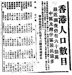 Während der gesamten Besatzungszeit betrieben die Japaner eine „Repatriierungspolitik“, Zwangsumsiedlungen insbesondere von arbeitslosen Hongkongern auf das chinesische Festland, um dem chronischen Nahrungsmangel entgegenzuwirken und die Stadt vor einem möglichen alliierten Gegenangriff zu entvölkern. Die Einwohnerzahl nahm bis 1945 von 1,6 Millionen auf 600.000 ab.[1] Die Besatzer nutzten staatliche und private Einrichtungen ohne Rücksicht auf zivilen Bedarf für ihre Zwecke. Für die Erweiterung des Flughafens Kai Tak wurden zum Beispiel die historische Stätte des Sung-Wong-Toi-Denkmals (Song Bing) und Teile der Kowloon Walled City zerstört. Einige renommierte weiterführende Schulen wurden zu Militärlazaretten umfunktioniert, darunter die Jesuitenschule Wah Yan College, die Diocesan Boys’ School, die Central British School (heute: King George V School), das anglikanische St. Paul’s Girls’ College und das La Salle College.