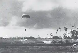 Am nächsten Morgen sprang die zweite Gruppe mit 185 Mann der 3. Kompanie als Verstärkung über dem Flugfeld ab.[4][7] Während der etwa anderthalb Stunden dauernden Schlacht gelang es den Fallschirmjägern das Flugfeld zu erobern, wobei sie jedoch schwere Verluste erlitten. Unter anderem fiel der Kommandant, Hauptmann Someja, der Fallschirmjägertruppe. Gegen Nachmittag erreichten weitere japanische Einheiten zusammen mit drei Tanketten des Typ 94 TK das Flugfeld.[11]